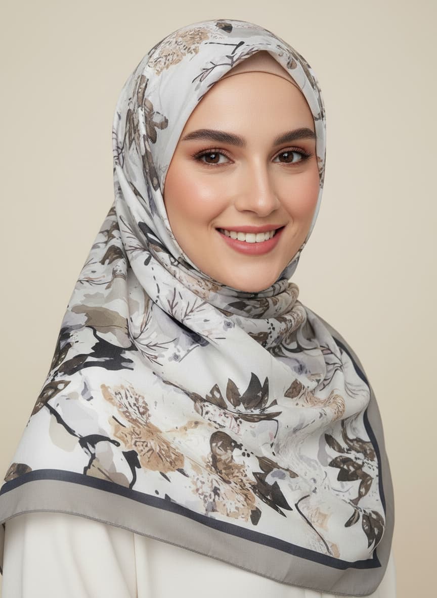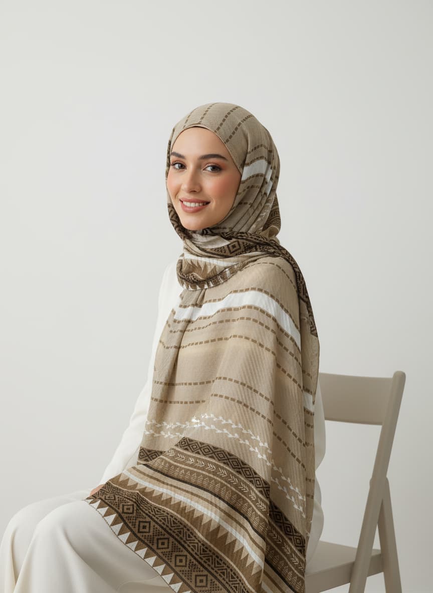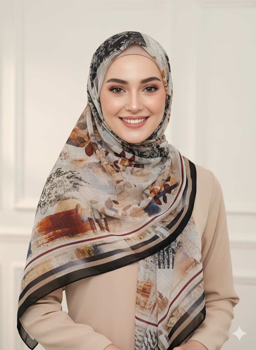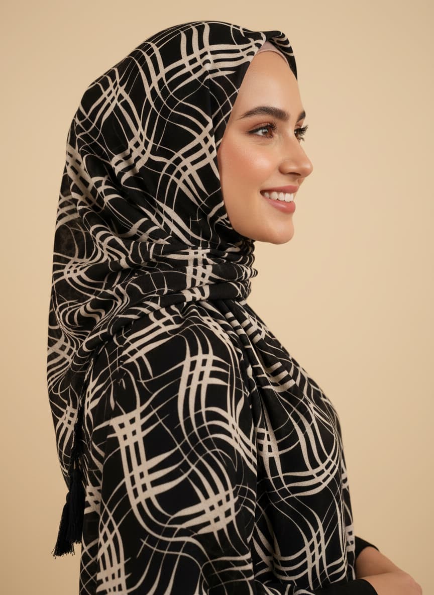 Discover the perfect blend of style and comfort with this premium cotton voile scarf. Its striking geometric pattern in grey, black, white, and warm brown adds a modern touch to any outfit. The breathable, high-quality fabric is completely non-slippery and holds its shape beautifully, making it ideal for head coverings and effortless draping. Dimensions are a generous 178*68 Cm\70*27 inches. ... See MoreSee Less
