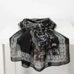 • Refined Edges: The scarf is finished with a precise baby hem (rolled hem) along all four sides to ensure a clean, professional appearance.