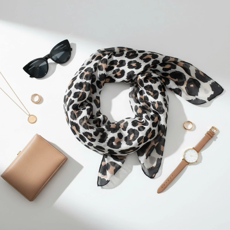 Elevate your everyday style with our Ever-Safe Leopard Cotton Voile. Crafted from premium, breathable fabric measuring 115 x 115 cm (approx. 45 x 45 inches), this scarf offers a lightweight feel with a reliable non-slip texture. Perfect for effortless styling that stays in place all day.